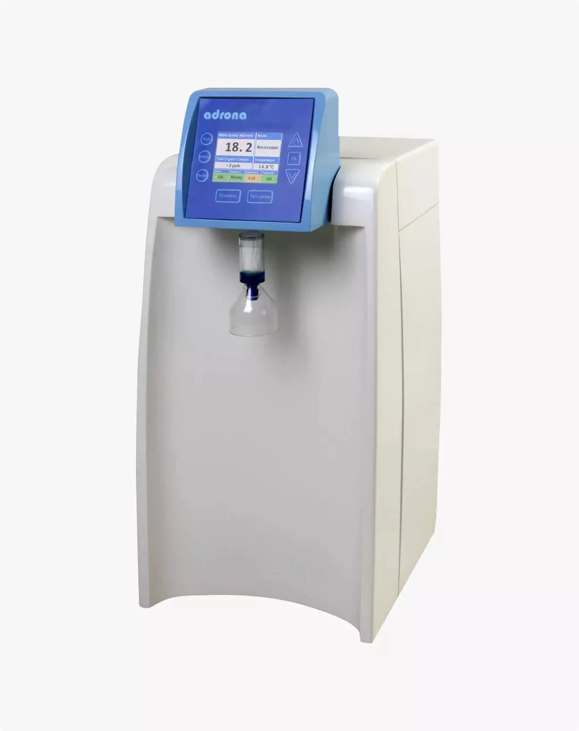 Adrona Onsite+ is water polishing system, for which the feed water must be pre-treated by reverse osmosis or distillation. It produces ultrapure water that complies with ISO 3696 Grade 1 water requirements.